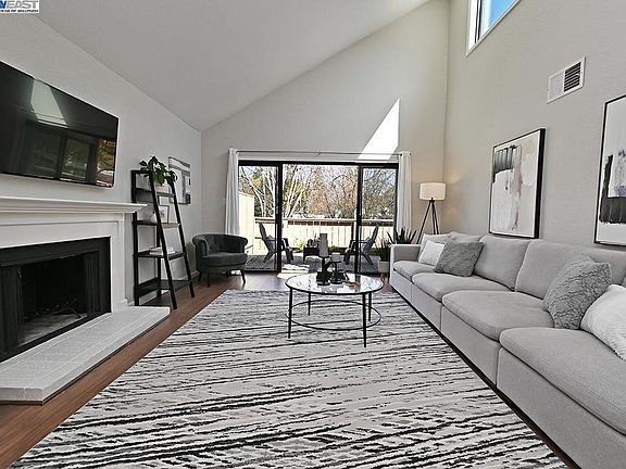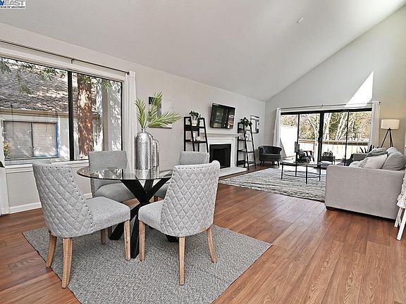 RARE SINGLE-STORY END UNIT TOWNHOME IN SOUGHT-AFTER STONERIDGE NEIGHBORHOOD. Open floor-plan with high ceilings, large windows, and lots of natural light. New flooring throughout, with newly renovated bathrooms, updated kitchen with stainless steel appliances and large primary suite. Recessed lighting in all rooms, smart thermostat, recently upgraded heat pump and plenty of closet space. Fenced, private front and rear yards plus atrium courtyard. Community tennis courts, pools, clubhouse, walking paths and guest parking. Beautiful wooded setting with creek and lush trees throughout. Walking distance to Muirwood and Moller Parks, proximity to top-rated Pleasanton schools and convenient 580/680/BART/ACE commute access.
