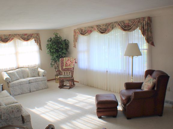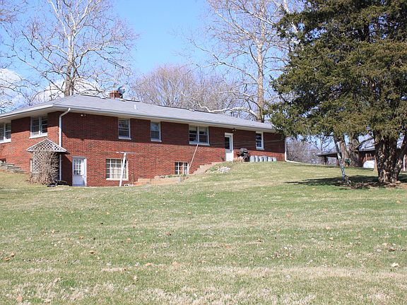 Solid brick low maintenance ranch home 2 bedroom with possible 3rd. Eat in kitchen all appliances. Walk out basement with wood burning fireplace. Three out buildings. Property includes 18 HP Riding mower.