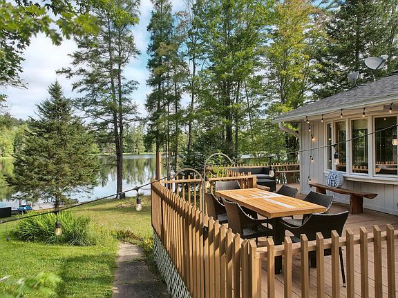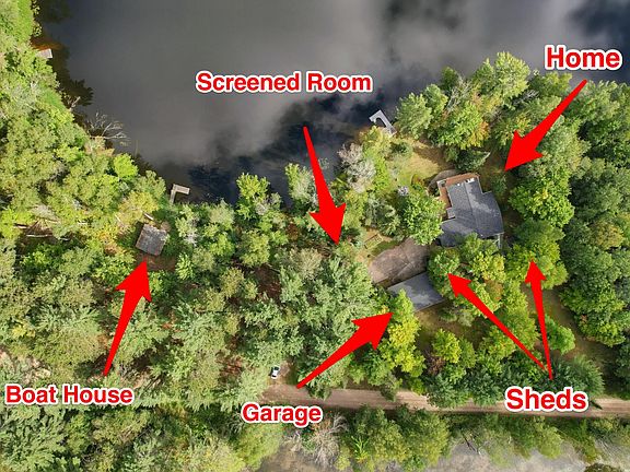Welcome home to this peaceful 354’ of sand frontage on Croker Lake - great for pan fishing! This furnished home boasts 3 big bedrooms & 2 full bathrooms sitting on a quiet & private 1.8 acres. The vaulted ceilings & open concept floor plan with a stunning lake view set the perfect scene to host guests. The serene view continues out onto the wrap around deck where you can oversee the dry boathouse by the shoreline & the screened in gazebo. Don't forget about the 3-car garage along with several other bonus outbuildings/sheds; great for storing kayaks & stand-up paddle boards to enjoy on the relaxing silent sports lake. The home had a new roof & gutters on in 2018 & other recent cosmetic updates inside. Seller rented this home periodically between their stays to generate some income. Contact your agent for a showing today!