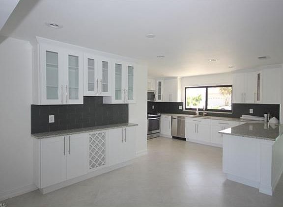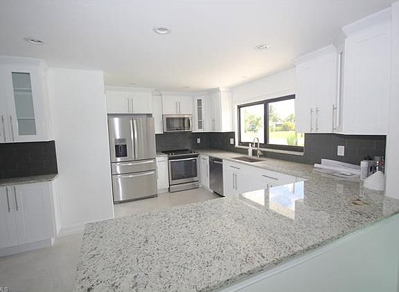 Dock your 40'+ yacht here! Direct gulf access with no bridges to cross! An impeccable luxurious remodel charmer. Here's the home you've been waiting for, located in the heart of highly desirable south Cape Coral. Move-in ready home with diagonal tile floors throughout, hardwood flooring in master bedroom, freshly painted inside and outside, new white shakers kitchen and bathroom cabinets with granite counter-tops, master shower with marble floors and marble walls, glass shower in all bathrooms, high baseboards and windows and doors casing, high glass IMPACT windows and doors, new set of stainless steel appliances, large backyard, plenty of room for pool, large pavers patio. Extended wooded dock with peaceful view of the Stratford and Bimini Canal, minutes from the Gulf of Mexico. Paradise awaits!