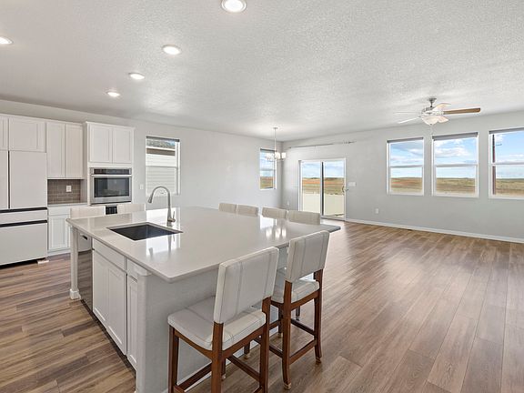 Welcome to your next home sweet home! This beautifully designed 5-bedroom, 3-bathroom ranch-style home offers the perfect blend of comfort, space, and modern finishes all in a prime, centrally located neighborhood with easy access to Fort Carson, Peterson Space Force Base, and Schriever Space Force Base. Enjoy the convenience of main-level living, featuring an open-concept layout with laminate flooring, abundant natural light, and thoughtful touches throughout. The spacious primary suite includes an en suite bath with dual sinks, a walk-in shower, and a large walk-in closet. Two additional bedrooms and a full bathroom are also on the main level, ideal for guests, children, or a home office. The gourmet kitchen boasts an oversized quartz island, double ovens, a gas stove with hooded range, and plenty of cabinet space perfect for cooking and entertaining. The fully finished basement offers a large flex space ready to accommodate a home theater, gym, playroom, or your personal vision. Downstairs you will also find two additional bedrooms, a full bathroom, and a spacious storage/mechanical room with a water softener. Outside, enjoy an upgraded concrete patio that wraps around the north side of the home, providing ample space for outdoor gatherings. The fully fenced backyard offers privacy and room to relax or play, and central A/C keeps the entire home cool and comfortable. A spacious 2-car garage adds everyday convenience. This home truly has it all space, upgrades, comfort, and an unbeatable location near major military installations. Schedule your tour today and see why this one will not last! 12 Month Lease