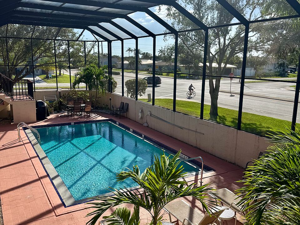 Check out this unique annual rental located in the heart of Cape Coral! This 2 bedroom 2 bathroom apartment is located in Stella Maris building right off of Coronado, with many amenities. There's a large community pool with resort like vegetation and seating throughout. Apartment overlooks the screened in courtyard/pool area and there is even a grill for your convenience. The apartment features vinyl flooring throughout and modern bathrooms with lighted mirrors. Not to mention a private screened in balcony. Washer and dryer are located inside the unit and WATER UTILITY IS INCLUDED! There is also a private storage shed available located near the carports. WATER INCLUDED, 1 car port is provided per tenant however association can provide another space that is not covered at an additional fee. Tenant must apply with management company first and then the association.