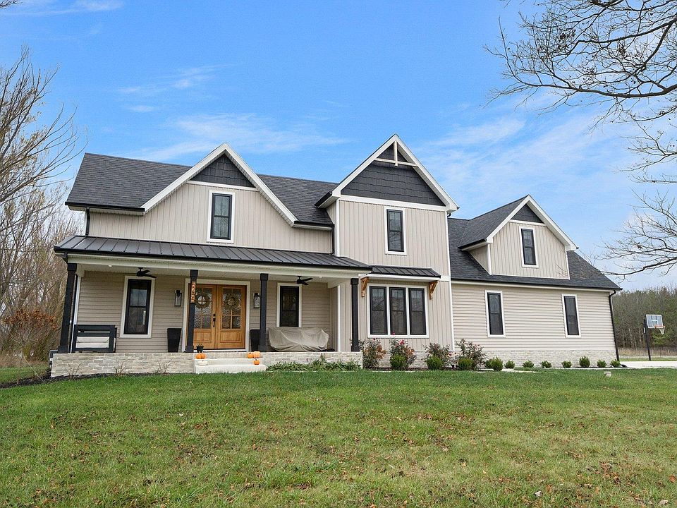 Escape the hustle and bustle of city life with this beautifully restored farmhouse, expertly updated with on-trend finishes and modern conveniences! Nestled on 1.98 scenic acres, this property offers a serene retreat complete with a picturesque pond, a versatile outbuilding, and nearly 2,900 square feet of living space above grade. Extensively remodeled and featuring a thoughtfully designed room addition completed in 2023, this home blends classic charm with contemporary elegance. Relax on the inviting front porch or host unforgettable gatherings on the spacious rear deck while enjoying the peaceful country air. The private pond is perfect for summer fun, boasting a sandy beach and a gradual depth decline reaching 13 feet—ideal for swimming and water activities. The oversized attached garage (29x24) features high ceilings, providing ample space for vehicles and storage. The outbuilding, with its covered outdoor space overlooking the pond, is a versatile spot for hosting outdoor events or simply unwinding with a view. Rustic tranquility meets modern living!