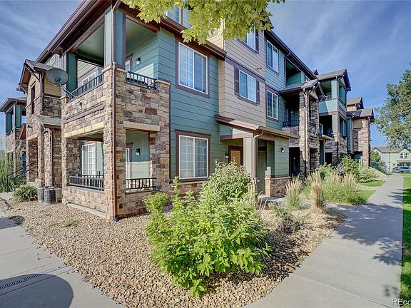 This condo provides a low-maintenance lifestyle and the comfort of home. Enjoy the bright living room with cozy gas fireplace plus a great private patio with a storage closet. Spacious primary bedroom has an ensuite bath and two closets. Work from home with ease in the bonus room/den that can also be an additional guest room. Additional features include convenient in-unit laundry and reserved parking spot. Community offers pool, gym, and clubhouse. Enjoy many parks and trails this neighborhood offers. Easy commute to major highways and DIA. Welcome home to this fantastic condo! Buyer and /or Buyers Agent to verify measurements and all information within listing.