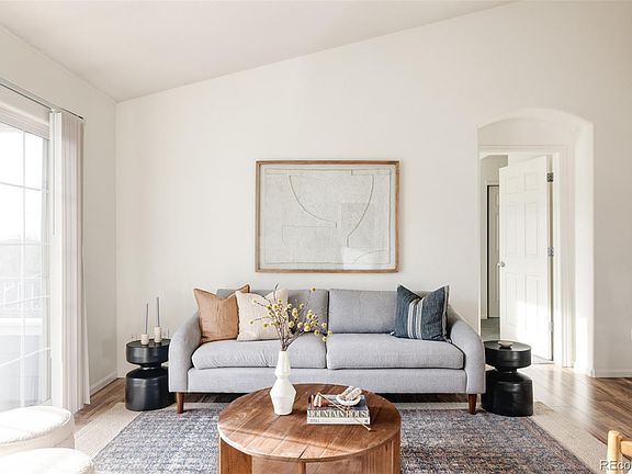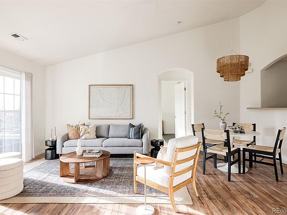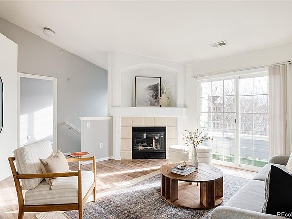 Discover this beautifully updated, top-floor, south-facing 2-bedroom condo in the Trails at Parkfield Lake - offering breathtaking mountain views from the private balcony. With fresh paint, updated lighting, and new carpet and flooring throughout, this home is truly move-in ready. As a top-floor unit, you'll enjoy the added benefit of a quieter living experience with no neighbors above. Step into the open-concept great room, featuring vaulted ceilings, an elegant electric fireplace, and access to the covered balcony—perfect for entertaining or relaxing. The kitchen has been thoughtfully upgraded with new stainless steel appliances, including a dishwasher, refrigerator, range, and microwave, plus a convenient pantry. A separate dining area adds to the home's charm and functionality. The spacious primary suite is a true retreat, featuring vaulted ceilings, a private en-suite bath with double sinks, and a luxurious oval soaking tub. A secondary bedroom, full bathroom, and included washer and dryer complete the well-designed floor plan. Additional storage space is located off the balcony for your convenience. This home also comes with a detached 1-car garage and a reserved off-street parking space. Community amenities include a swimming pool and fitness center. Conveniently located near Anschutz Medical Campus, this condo is just minutes from shopping, dining, and downtown Denver. Enjoy easy access to I-225, E-470, and Denver International Airport. Don’t miss this rare opportunity to own a quiet, move-in-ready condo with incredible updates, modern amenities, and stunning views!