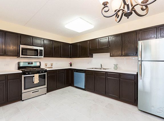 MOVE IN READY! Freshly painted, New carpeting, New kitchen flooring, New kitchen appliances, New lighting and Ceiling Fans, New bathroom vanity. Spacious and bright condo in elevator building. Large eat-in kitchen with tons of cabinet space. Stainless Steel appliances. Large Living Room Dining Room Area with balcony overlooking quiet neighborhood area with lush landscaping. Two very large bedrooms with ample closet space. Full size washer and dryer. Heated garage parking spot. Assessment includes heat, water and cable tv. Convenient to the highway, super convenient location to grocery store and parks.
