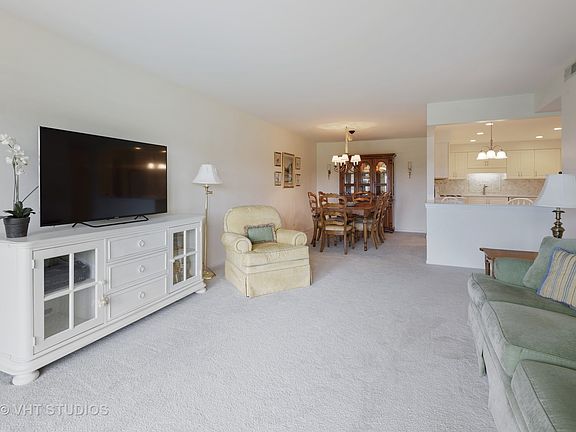 Move-in ready! Impeccably maintained condo at beautiful River's Edge of Sauganash. Top floor unit with unobstructed, expansive view from the large balcony. New A/C condenser, New roof, New washer/dryer all done in 2020. Building tuck-pointed in 2018. Primary bath complete remodel in 2017. Quartz kitchen countertops with Carrara marble backsplash and Kohler kitchen sink and faucet done in 2016. Pella windows, American Thermal sliding glass balcony door, Closets by Design closet systems in both bedrooms, flexicore heated floors, Heated indoor parking space and storage closet. Basic cable included in assessment, with HBO. Walking distance to Jewel.