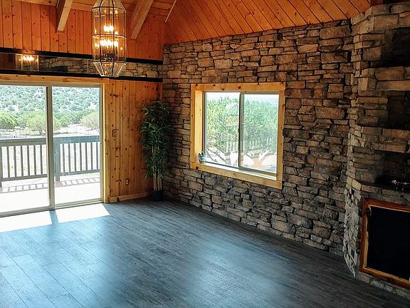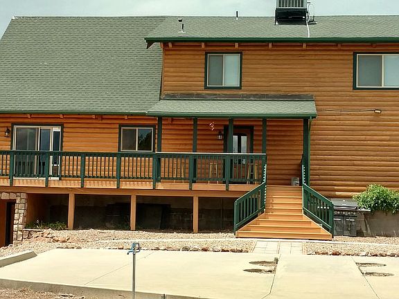 Live in rustic luxury. Bring your toys, animals, and RVs. This log cabin home boasts 2987 square feet of custom wood and rock work. Miles of breath-taking views of the surrounding mountains and valleys. Private neighborhood adjoins state land. This 4 bedroom, 3 bathroom, open floor plan home is situated on 3 acres of fenced and cross fenced land. The home has been fully renovated with granite countertops, soft close hinges, oil rubbed bronze fixtures, LED lighting, new flooring, dual pane windows, and custom tile showers. Kitchen has a double oven and a cooktop that is currently electric, but a gas hook up is available. The prep kitchen offers an additional sink and storage area. The island has hand blown glass pendant lighting, custom rock, and a hand crafted beam. Pellet stove is situated on the main floor and will heat all of the living space. A new HVAC system was installed in the fall of 2019. Large swamp cooler offers cooling for all of the main living area, as well. 1000 square foot man cave/game room comprises the basement level, complete with custom rock work, and a gas fireplace, hot tub, and bathroom. Large enough for a pool table, ping pong table, and additional room to spare. Separate laundry room is located off the kitchen. Home is perfect for entertaining, featuring the game room, and a spacious back deck that leads to a massive concrete patio. A raised bed garden with an automated watering system has already been planted with vegetables and herbs. The home has a 2 car attached garage with shelving and a two storage sheds. Situated on the outskirts of town, a myriad of wildlife abounds. For more views from this property, visit the google photo link: https://photos.app.goo.gl/YS39zcsytT1cXTxm7 Experienced sellers will work with Buyer's Agent at 3%. Refrigerator, freezer, washer, dryer, and televisions do not convey.