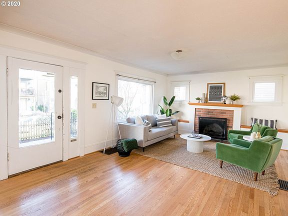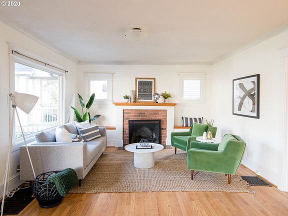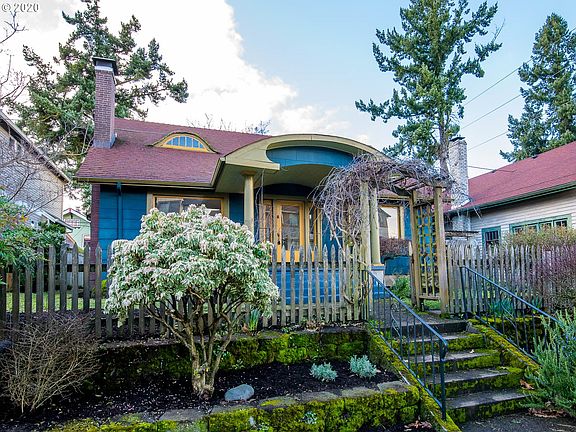Light and bright throughout with high ceilings + hardwood floors, big picture windows + built-ins. French doors to formalize the dining room. Cozy up by the wood-burning fire or bask on the front porch. Large updated kitchen has tons of cabinets. Upper master suite! Updated systems: water main, water heater, new hi-eff furnace, wiring. Big back yard is fully fenced and garden-ready yard, complete with chicken coop! Unfinished basement provides ample storage. [Home Energy Score = 4. HES Report at https://rpt.greenbuildingregistry.com/hes/OR10131032]