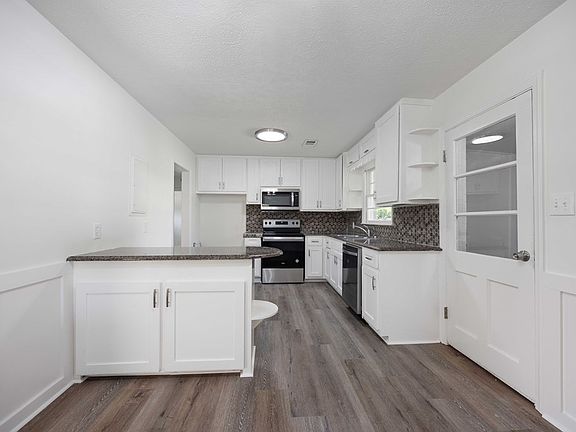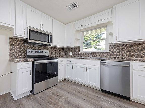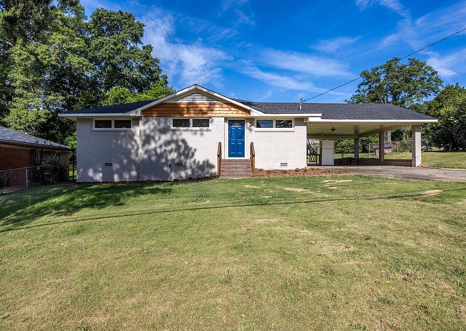 This delightful home offers 3 bedrooms, 1 full bathroom, within its 1,014 square feet of beautifully designed living space. The light-colored walls and dark wood flooring create a neutral backdrop, allowing your personal style to shine. The modern kitchen boasts an eye-catching mosaic tile backsplash and a window that floods the space with natural light. Whether you're hosting family gatherings or preparing weeknight dinners, this kitchen is both practical and aesthetically pleasing. The bathroom exudes sophistication with its sleek gray polished tiles adorning the floor and walls, lending a modern touch. This all Brick Home has a nice sized fenced back yard and 2 car carport. Every corner of this home has been thoughtfully designed to offer comfort and elegance, making it the perfect place to create lasting memories. Perfect for a first time home buyer or downsizing.