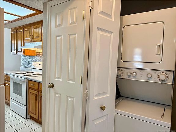 Beautifully updated condo on the main level with two entry doors. Fresh carpet and paint, new stove and refrigerator, built in dishwasher, updated ceiling fans in the bedrooms and stackable washer & dryer make this unit move in ready! Living area has a decorative fireplace, built in shelves, ceiling fan and a coat closet. Primary bedroom with spacious walk in closet and direct access to the full bathroom. Second bedroom has full size closet. Dining room next to kitchen. The covered parking space is located just out the front door. Rent includes trash, sewer, most exterior maintenance, and access to the pool located right across the street from this condo. Tenant pays electric & gas separately. A $45/mo water usage will be added to monthly rent. No pets and no smoking. Owner pays HOA fee. Renter is responsible for gas (ONG) and electric (PSO). Renter pays water fee to be included in rent. No pets and no smoking. Renters insurance not required by owner but highly recommended.