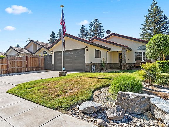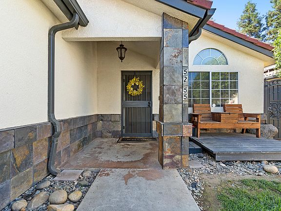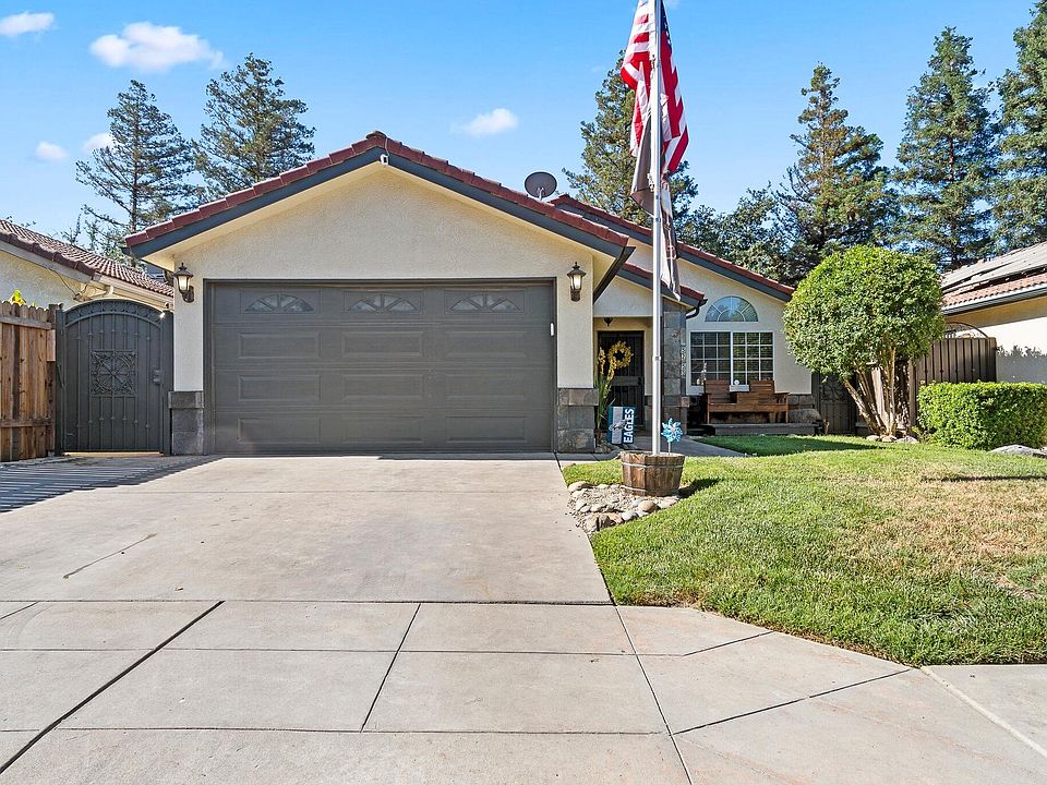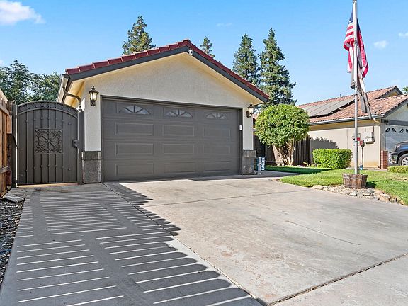 Perfect starter home in highly desirable North Fresno, with POOL! Head inside where you'll appreciate the open living spaces Kitchen offers tile counters, with a breakfast nook and overlooks the living room where you'll love the vaulted ceiling. Two spare bedrooms, full spare bathroom, and indoor laundry room. The primary bedroom hosts a gorgeous high vaulted ceiling, dual closets, and private slider to the backyard. Primary bathroom boasts dual sinks with a built-in vanity. Out back, you have the covered patio and pool, along with a dog run on the side. Sierra Sky Park Airport nearby, easy freeway access, and plethora of shopping centers with a variety of shopping, dining, & entertainment within short driving distance.