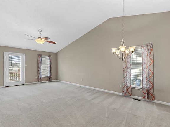 BACK ON MARKET- Buyer financing fell through. Come see this move in ready ranch in sought after Stone Meadows Subdivision. You'll love the open floor plan with vaulted ceilings, neutral paint throughout, and freshly cleaned carpet. The eat in kitchen has plenty of cabinets for storage and the refrigerator will stay. The spacious great room has an area for a large dining room table and a wood burning fireplace. The master bedroom suite has a large walk in closet and bathroom with double sinks, a corner tub, and separate shower. A main floor laundry, 2 more bedrooms, and a 2nd full bathroom complete the first floor. The walkout basement has plenty of storage, a rough in bath, a deep freezer that will stay, and is ready for your finishing touches. Neighborhood amenities include 2 pools, walking trails, a clubhouse, and sports fields. Close to schools, restaurants, and shopping with easy access to Hwy 70, Hwy 40, and the Page Extension. This one won't last long!