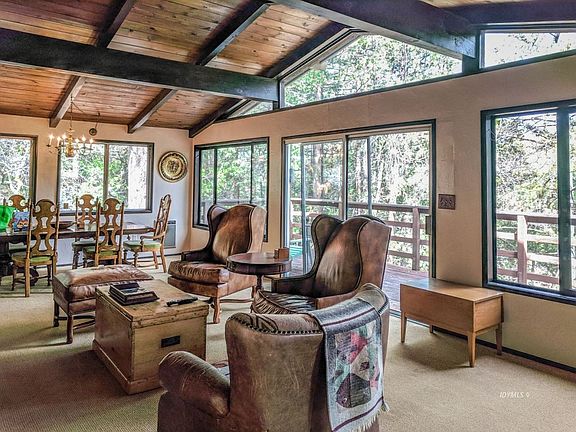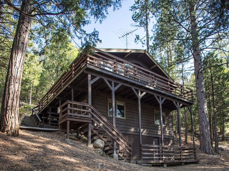 Come see this 3 bedroom 1.5 bath home on one of the best parcels in Idyllwild. Set on a large 1.3 acres but then surrounded by many acres of untouched wilderness on 3 sides. End of the road and the last home at the trailhead to Idyllwild's most iconic site. Steps from the creek and stunning boulders surrounded by beautiful trees and dappled sunset views. Every window and the deck look over peaceful serenity making this home the perfect canvas for the mountain lover. 2 full size bedrooms and one slightly smaller bedroom downstairs at the entry level with a laundry room and hall closets make downstairs the sleeping and laundry space. Upstairs is the kitchen and large living room with vaulted ceilings, fireplace and a wall of windows looking out over the creek and forest. A large deck accessed through the living room brings the gorgeous outdoors inside. A large attached dining area joins the kitchen to the large living room making entertainment and family gatherings the perfect place to be together. There is a downstairs below the main level that is great for storage and houses the forced heating system and water heater. Another lower deck at ground level sits off this storage room.