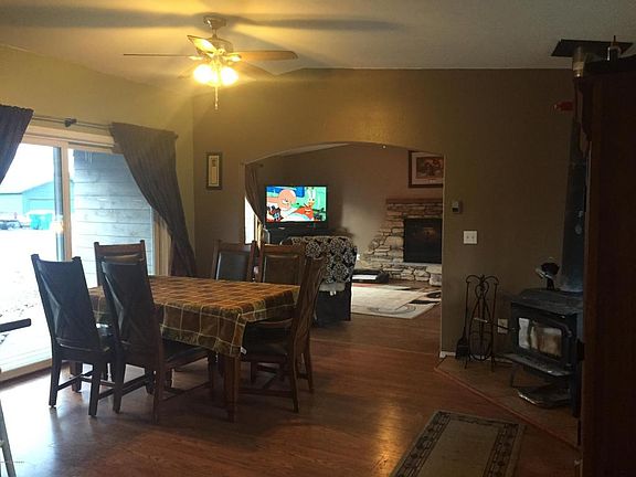 - Fireplace features: wood stove