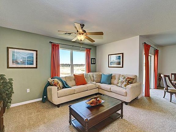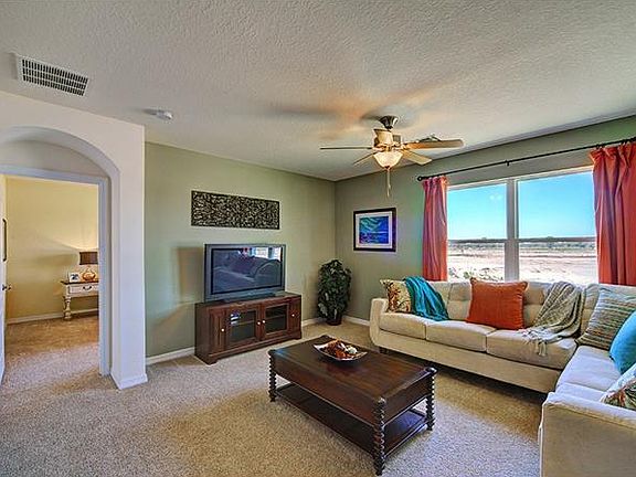 New Construction in SW Bradenton Gated Community- The Cali -1828 SF This appealing one-story home includes many contemporary features, and an open-concept design and 8'8" ceilings enhance the wonderful feel of this home. The kitchen includes a large island perfect for bar-style eating or entertaining, a walk-in pantry, and plenty of cabinets and counter space. The well-appointed kitchen comes with all appliances including refrigerator, built-in dishwasher, electric range, and microwave hood. The dining room and living room both overlook the covered lanai, which is a great area for relaxing and dining al fresco. The large owner's suite, located at the back of the home for privacy, can comfortably fit a king size bed, and includes an en-suite bathroom with double vanity, big walk-in closet, and separate linen closet. Three other bedrooms share a second bathroom. The two-car garage connects to the front hallway with additioal linen closet where the laundry room, equipped with included washer and dryer is also located. Photos are of model home only. Additional color schemes and features are available.