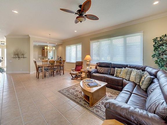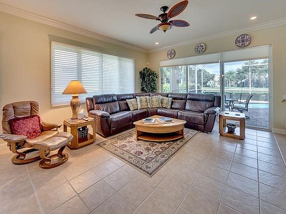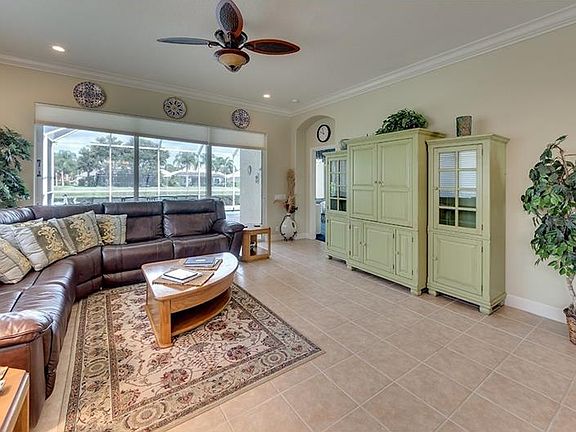THE HOME YOU DESERVE! Maintenance-free, 2 bedroom, 2 bath home with great room, den, breakfast café, lush landscaping, 2 remote-controlled awnings on patio, golf cart garage and ... best of all ... fabulous water view. Cool off with a dip in the free form pool. Stainless appliances, wood cabinets, Roman shower in master bath, thermal pane windows, volume ceilings and paver brick patio.