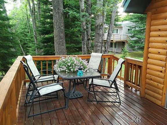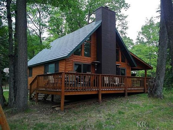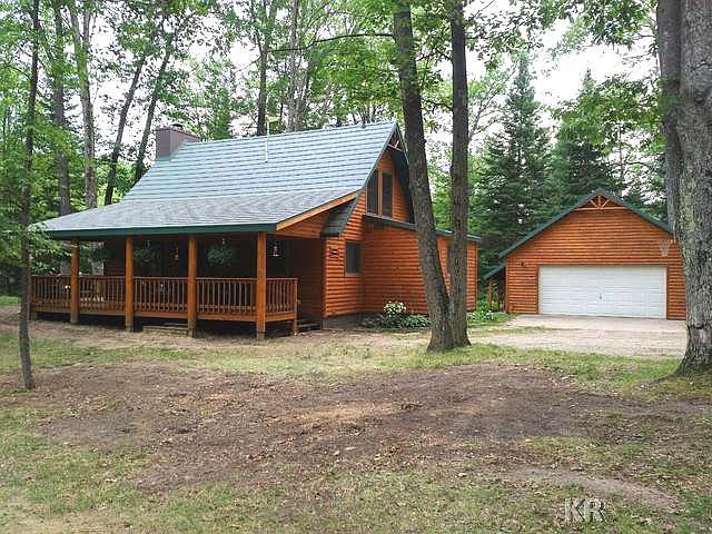 If you are looking for a home or cottage located in a beautiful scenic area, within a few steps from a beautiful beach, a park, walking trails & the property backing up to hundreds of acres of state land, then you may have just found your own slice of "Up-North" paradise! This lovely country home features new log siding 2017, steel roof & covered deck in 2015, new knotty pine interior in 2005, Generac generator, vaulted ceilings, fireplace with wood stove insert, lots of windows, a 2 car detached (log sided) garage with a storage loft. All of this sits on approximate 1.2 acres with a flowing creek through the back yard and backing up to state land. Walk across the street to go swimming at the super clean sandy beach with a swimming raft. You can also walk to the park across from the beach, where there are also walking trails leading to the Cedar River. You will fall in love with the area when you see it. Blue Lake is a no-gas motos fishing lake. Truly a One of a Kind Up North gem!