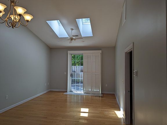 Carleton Place townhouse- Spacious 3 bedroom/2 bath townhouse that backs to UNCW! House has been freshly painted and has hardwoods throughout. Private/fenced backyard. Community pool. Primary bedroom has huge walk in closet and garden tub in bath. Secondary bedrooms good size. Plantation shutters throughout. Kitchen open concept w/ granite countertops and stainless steel appliances. Large family room with vaulted ceiling and skylights. Washer/dryer and refrigerator included. 2 parking spaces in driveway, one on Carleton Drive. Available immediately. Trash pickup is included in rent. All other utilities are renters' responsibility. Up to 2 pets allowed. No smoking in unit or in community common areas. Two parking spots in driveway. Third spot available on Carlton Drive. Two pool passes provided. 12 month lease