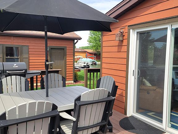 Get ready for lake life!! Here is your 3 bedroom/two bath waterfront home priced under $300,000. This property includes 2 lots which gives you plenty of yard & 2 boat docking spaces along your capped seawall to enjoy. The home is very well maintained & decorated in a lake theme. You will love the ambience the ventless gas fireplace creates in the family room. You can make things easy & move right into this nicely furnished channel front home and enjoy this Summer! Most furnishings, including TVs, the outdoor composite furniture, gas/charcoal grill and appliances stay. The 20X24 garage was built in 2010 & has a brand new garage door & opener that you can control remotely. The newer John Deere mower (only 50 hours), extra freezer, refrigerator & portable heater in the garage stay. Plus, there is an 8X12 storage shed. Updates include a new well pump, well pressure tank & sump pump in 2024. Both bathrooms had updates in 2023. Doors & windows were replaced in 2023. Central air & water softener were new in 2018. Kitchen was updated with new flooring, countertops, sink & plumbing in 2018. Appliances & washer & dryer were new in 2017. Roof is only 7 years old. Wow! Make your appointment to see this lake home soon.