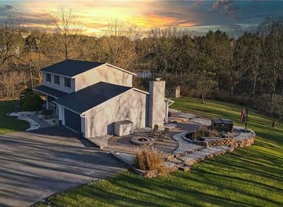 WOW, you don't want to miss this one!! NEW roof, soffits, siding, shutters, heat, AC, and water heater!! And it gets even better! This stunning home shows just like a model with no detail overlooked! New flooring throughout, fresh paint, beautifully remodeled kitchen and bathrooms, and a finished basement! A perfect blend of modern amenities and old world charm! Kitchen has stainless appliances, white cabinets, and herringbone tile backspash. Bathrooms boast new tile, vanities, and fixtures. Stylish and sophisticated living room has built in bookshelves with rolling ladder. Charming, cozy family room has wood ceiling beams, wood burning fireplace, and entrance to patio. Walk-out basement is huge and partially finished, with plenty of storage too! Laundry conveniently located on the first floor. Outside, enjoy 2.5 acres of privacy and tranquility. Expansive paver patio wraps around the side of the house, and includes a firepit, hot tub, pond, and multiple seating areas. Schedule today!!