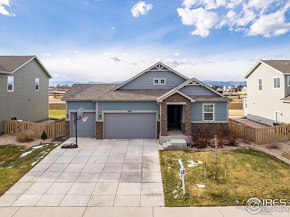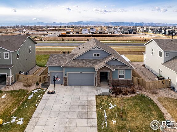 This bright ranch is better than new! Open floor plan shows off the roomy living space, and adjoining dining area and island kitchen are perfect for entertaining. Stacked stone gas fireplace is great focal point lined on each side by white bookshelves. Plentiful cabinetry makes for easy storage in this savvy kitchen that also boasts granite countertops, large island, and breakfast bar! Dining area opens to patio and fenced yard. Primary bedroom has spacious walk-in closet and adjoining bath has double sinks, linen closet, and large shower with bench. Huge, insulated basement is perfect for gym or storage plus it has rough-in plumbing for an easy finishing project. You'll be amazed at the 3-car drywalled garage with epoxy flooring that can store all the extras. Timnath Ranch gives the bonus of two pools for summer fun and it's just minutes from shopping, restaurants, and downtown Fort Collins.