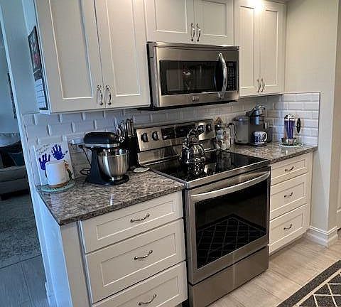 Beautifully Updated 2-Bed, 2-Bath Condo with Golf Course Views. Welcome to this stunning ground-floor condo located in the highly sought-after, gated community of The Fountains. Overlooking the picturesque golf course, this beautifully updated home perfectly blends comfort and convenience. As you step inside, you'll be greeted by all-new ceramic tile flooring that flows seamlessly throughout the space, complemented by elegant baseboard molding. The modern kitchen, featuring brand-new stainless steel appliances, granite countertops, and a stylish subway tile backsplash. The spacious living areas and both bedrooms are designed to maximize natural light, boasting large sliding glass doors that lead to an expansive 400-square-foot private screened-in patio.