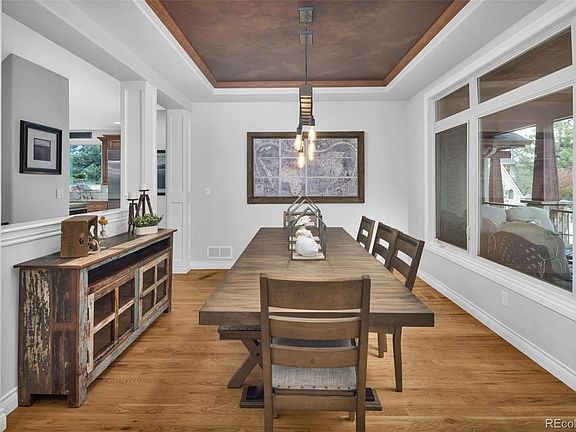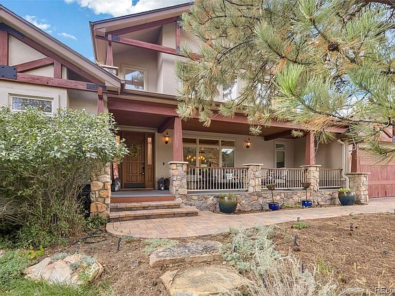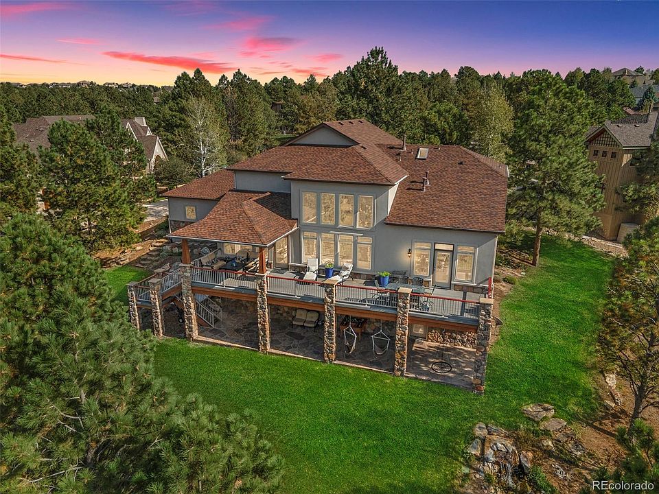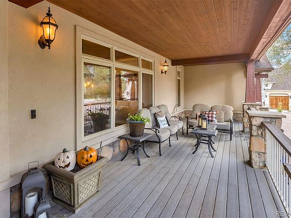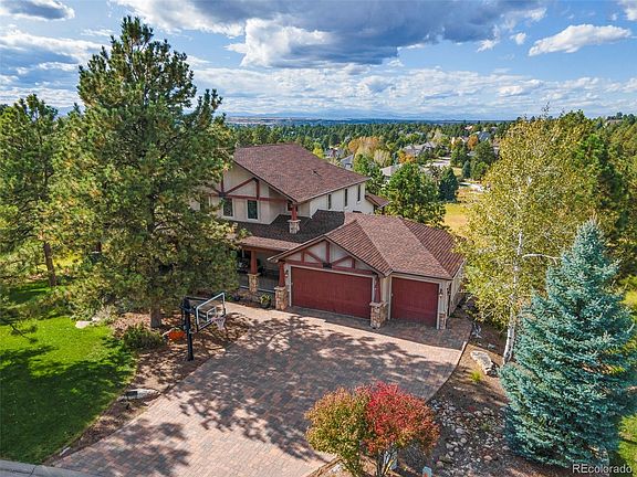 Situated in the coveted Timbers at The Pinery neighborhood, this stunning residence offers mountain views & the serenity of open space.Tucked away on a half-acre lot at the end of a cul de sac, this home welcomes you with its spacious front porch, perfect for relaxation. Enter to a foyer that gracefully leads past the formal dining room & office into a grand two-story living room. Here, a floor-to-ceiling stone fireplace serves as a stunning focal point, complemented by expansive windows that frame the awe-inspiring mountain views.The gourmet kitchen boasts top-of-the-line amenities, including a sub-zero fridge, 6 burner gas range, double oven, warming drawer, & a Cove dishwasher. A large center island graced with granite counters and a prep sink makes both meal preparation and entertaining a breeze with a huge laundry/mud room/pocket office just off the 3 car garage.The main floor primary bedroom serves as a sanctuary, complete with a spa like en-suite bathroom, large walk-in closet, cozy fireplace & private access to a vast back deck with beautiful views. Ascend to the upper level to find a spacious loft, a private guest suite, & two additional bedrooms connected by a Jack & Jill style bathroom. The finished walk-out basement encompasses a kitchenette, a dedicated workout space, & a guest suite that opens to a vast patio—perfectly poised above a tranquil water feature.