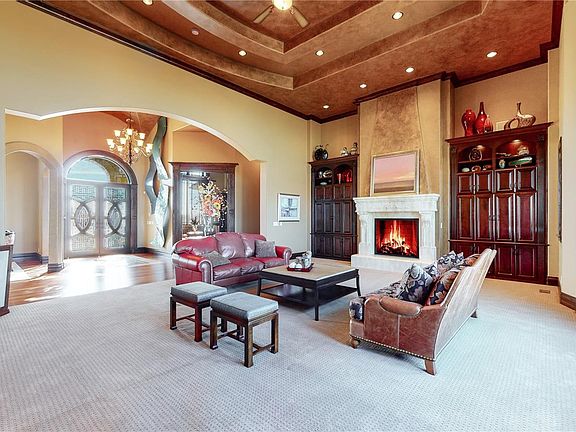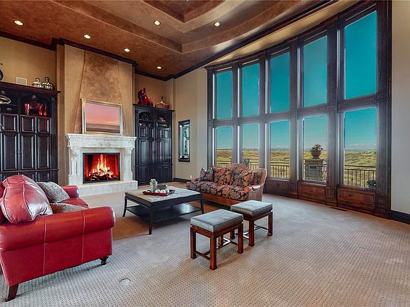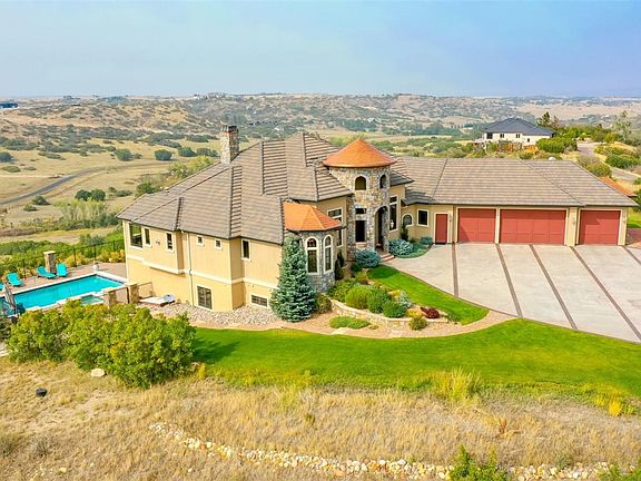 Custom estate perfectly situated on a beautiful 35-acre lot with spectacular mountain views! This secluded retreat in the exclusive gated community of Castle Park Ranch is conveniently located just minutes from Castle Rock and Parker. Relish in a private and serene lifestyle and inspirational 360-degree sprawling views. Professionally landscaped grounds including gardens, pool with waterfall, in-ground hot tub & fire pit. This bright & airy ranch-style home w/walk-out lower level is rich with custom woodwork, gleaming Brazilian cherry wood flooring, large windows & designer ceilings. The gourmet kitchen is appointed w/Thermador professional line appliances including 2 dishwashers, built in freezer/refrigerator columns, 6-burner cook top w/lower side by side double ovens, an under counter refrigerated double drawer unit, wall convection oven, microwave & warming drawer. The kitchen also has a 13 center island with 3cm granite top & travertine inset backsplash. The breakfast nook features octagonal recessed ceiling & French doors opening to the upper heated (snow melt) deck w/outdoor grill. Two story great room w/16 stepped ceiling, floor to ceiling Sierra Pacific casement windows, gas log fireplace w/stone raised hearth/mantle & custom cabinets. Additionally, the main level features a custom home-office w/recessed hexagon ceiling & formal dining room. Luxurious master suite features a gas fireplace, custom wood head board wall, dual walk-in closets & it opens to the upper deck. The spa like master bath has a walk-in shower w/10 ceiling, travertine tiled walls/floor, granite counters, Jacuzzi tub & in-floor heating. In the lower level youll find a family room w/fireplace & custom bar, wine room, home gym, theatre room & multiple doors that expand to the inviting backyard & pool. 2nd laundry in lower level. 4 car garage w/in-floor heating & epoxy coated floor. Snow melt at garage apron, upper & rear patios. Call listing agent for complete list of custom upgrades.