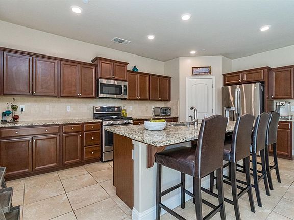 Lennar NextGen Multi-Generational Home on a Corner Lot. The Generational Suite has a private entrance and boasts a kitchenette,living area, bath and bedroom. The main home features an energy efficient NEST thermostat, auto light shut off in bathrooms, two AC units, tankless waterheater, and solar. The home has the latest wifi and security camera technology throughout. The designer kitchen features a full backslash, stainless steelappliances, and large pantry. Potential RV parking on side of home.