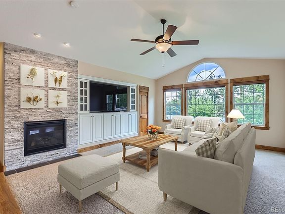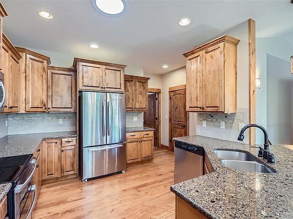 Step into warmth and quality in this large ranch home, with over 1800 sq. ft. on each level. Throughout the home, you will find alderwood trim and doors, adding a touch of elegance.  The spacious living room features an updated floor-to-ceiling stone fireplace, built-in TV cabinet, vaulted ceiling, and great natural light. The kitchen boasts granite countertops, alderwood cabinets, stainless steel appliances, a full tile backsplash, and beautiful real hardwood floors. Next to the kitchen is a mudroom with laundry leading out to a 3-car tandem garage, perfect for parking and storage. The large master suite has vaulted ceilings and includes a master bath with granite countertops, double sinks, soaking tub, shower, and tile floor. There are 2 additional bedrooms and a full bath on the main level.  In the basement, the 1800 sq. ft. is divided into two areas. One side has painted concrete floors, painted walls, and trim giving it a unique finished look. On the other side, you will find great storage space and mechanical room. Mature landscaping provides privacy and requires minimal maintenance. Situated in desirable North Loveland and just minutes away from Fort Collins, this home stands out from the rest.