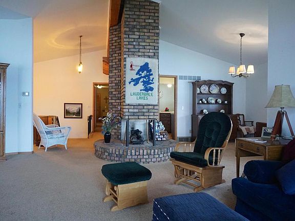 Spacious 6 bedrm home on 113 feet of level lake frontage on gorgeous Don Jean Bay on Lauderdale Lakes! Home features 2 brick fireplaces, 2 kitchens and large bedrooms with ample closet space plus 3 1/2 baths. 2 oversized living rooms plus a scrn porch with sweeping lake views and multiple dining spaces. Great master suite with private bath and a balcony. 2 furnaces, 2 piers. New roof in 2013. Perfect for 2 families or lg extended. Move right in and enjoy the summer, furnishings and pontoon are negotiable.