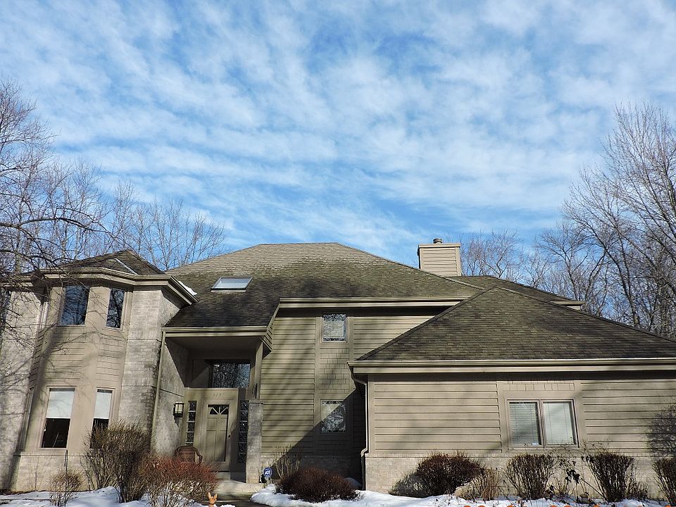 A Spectacular Colonial with a panoramic wooded lot in a convenient location. Spacious great room boasts Cathedral ceilings, a raised hearth fireplace & walls of windows to tranquil views. Large eat-in kitchen. Large Den w/ attached half bath. Master suite with frayed ceiling sitting area, walk in closet, large bath with whirlpool and skylight. Vaulted Ceilings, views from every room, skylights throughout. The lower level rec-rm offers bonus space.