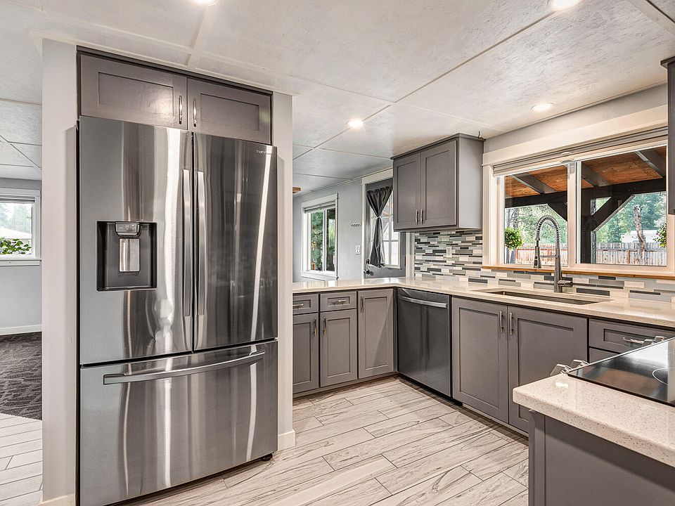 Beautifully updated from top to bottom, this home is move-in ready and offers so much more! You'll appreciate 3 bedrooms with high-end carpet, 2 tastefully remodeled baths, a bright kitchen w/ quartz counters, coffee bar w/ extra storage, and a separate laundry room. The new metal roof, windows, ductless heating/cooling, wood stove, and heated primary bathroom floor will keep you comfortable and cozy year-round. With over an acre fully fenced lot, a 900 sq ft. garage/shop, RV bay, chicken coop/run, garden, and solar powered electric gate, there is plenty of space for all your toys and animals. New City water/sewer, plus separate well for irrigation. Convenient, north La Pine location is only 10 min. to La Pine State Park, 20 min. to Sunriver, 30 min. to Bend, and 40 min. to Mt. Bachelor & High Lakes. Close to all that Central Oregon has to offer. Don't miss this new gem!