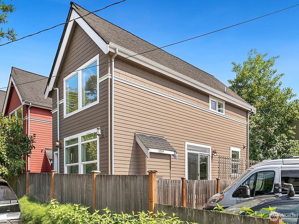 Unique, rarely available Brandon Street Cottage with soaring ceiling, gas fireplace and tons of natural light. Main floor features a bedroom/office & half bath. The kitchen has granite counters &stainless steel appliances. Primary bedrm is lofted, with ensuite full bath and walk-in closet. Radiant floor heat, fresh paint & carpet. 3-star Built Green. Sliders lead to a fenced private yard w/patio adjacent to a shared courtyard. Dedicated offstreet parking. This is a detached home with windows on all 4 sides and no HOA/no dues! Well situated... walk to Camp Long trails, parks, coffee, shops & restaurants, as well as South Seattle College & the public library. Steps to RapidRide bus line that can deliver you downtown in minutes. Welcome home!