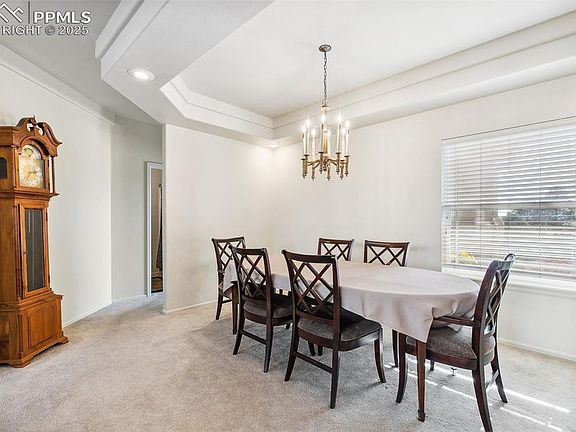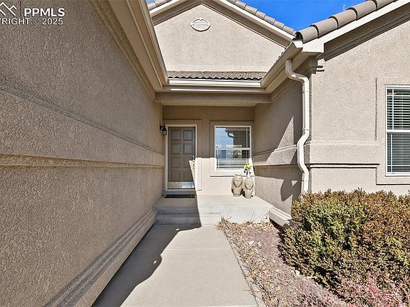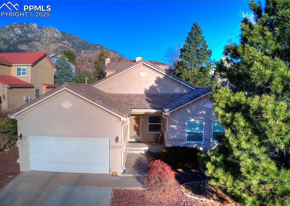 Welcome to low Maintenance living in a Gated Community. This beautiful and spacious 5-bedroom, 3-bathroom home offers a perfect blend of safety, comfort, and convenience in a secure gated community with low-maintenance living. The main floor primary suite features a large soaking tub. The open-concept living area boasts plenty of natural light, views of Cheyenne Mountain behind a beautiful Russian Olive tree that blooms in the spring and creates a beautiful backdrop for the living space as well as a privacy barrier. The south-facing driveway ensures quick snowmelt during the winter months. With a 2-car garage, ample storage, and a thoughtfully designed layout, this home is ideal for those seeking a balance of space and ease. Enjoy the tranquility of this private community while being just minutes from Fort Carson, award-winning schools, hiking trails, shopping, and dining.
