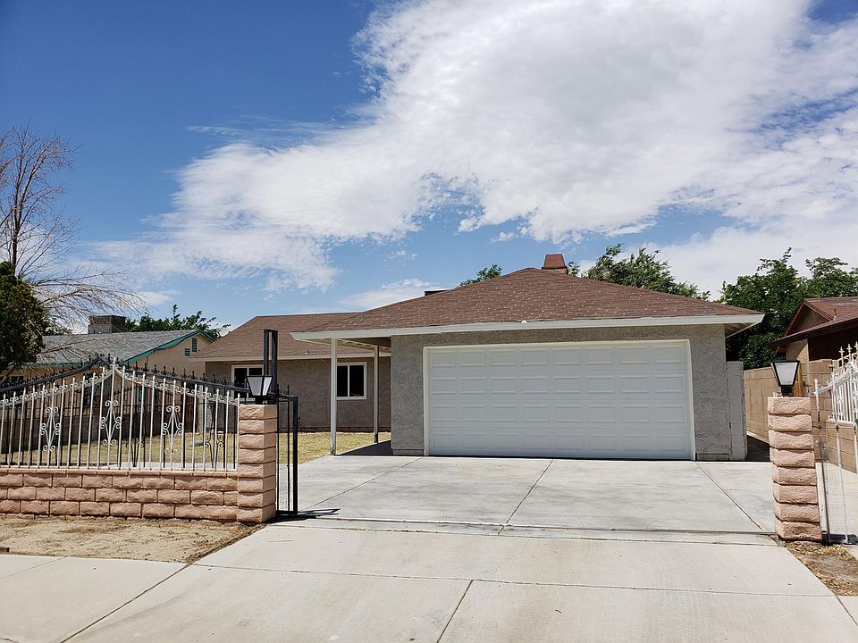Back On Market - Subject to cancellation of current escrow. Beautifully rehabbed single story 4 bedroom 2 bath Palmdale home. Brand new kitchen cabinets complete with quartz counters and stainless steel appliances. Open living room with fireplace. New flooring and fresh paint throughout the home.Bathrooms have new cabinets and light fixtures, new windows, new garage door and large back yard with covered patio and block walls. Hurry and make your appointment to see this home before it sells.