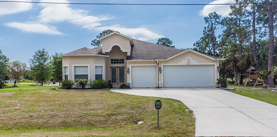 Rare 4 bedroom, 3 full bath, 3 car garage home built in 2016 situatedon a large oversized corner half acre lot!!This gorgeous home is just outside of town in a country setting but still onlya quick drive to I75, shopping, restaurants & entertainment. Why wait to build? This unique split floor plan home has great natural light & features high ceilings, beautiful curved archways & a flowing open floor plan that feels so incredibly spacious! As you walk through the double door entrance you will notice the formal dining area on your left separating the great room/living area with beautiful large columns. As you continue in you will find the kitchen to your right. Notice the custom Brazilian granitecountertops(throughout), solid wood cabinets & upgradedstainless steel appliances. The kitchen is open to the great room allowing easy entertaining. Head on out the sliding doors & enjoy the shadedlanai & quiet wooded view. The oversized lot also features a partially wooded shade filled side yard. Let's go back inside & you'llfind the Master Suite has a large walk in closet & the Master Bath featuresgranite countertops, separate dual sinks, roman soaking tub with stand along separate shower. You may also access the lanai from the Master Suite. Beyond the livingroom you will find the remaining 3 bedrooms generously spaced out to allow privacy for each. The thirdbathroom is located near the third exit out to the lanai & could easily one day serve as the pool bath as there is room for a pool. The inside laundry room has cabinets above for extra storage. The home has a smart nest thermostat that allows access to control the temperature remotely. And let's not forget the much sought after large 3 car garage! It has a wooden work benchfor all you hobbyists as well as metal shelving for extra storage. This home has so much to offer! This is truly a must see home so schedule your visit asap!