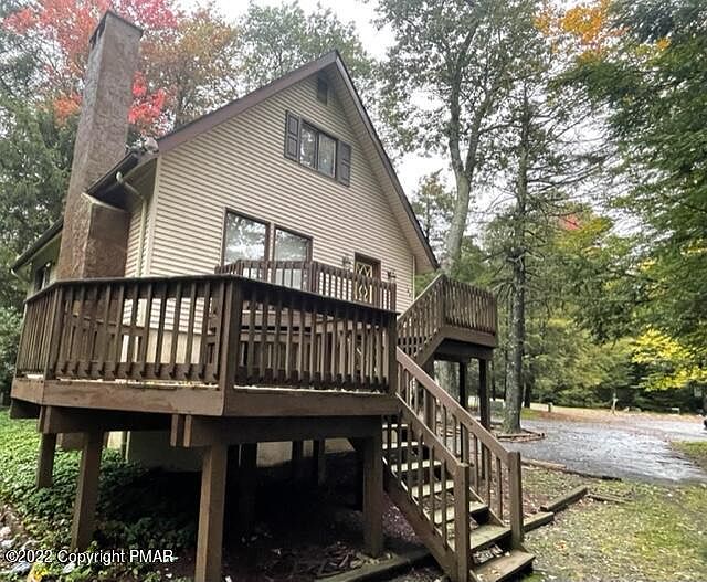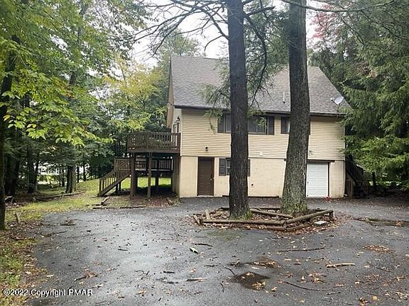 Hear the mountain melody in this lovely chalet located in the amenity filled community of Pocono Farms! Perfect for a year-round residence or weekend getaway. Short term rental friendly community so rent out your home when you're not in town. Cozy, stone fireplace, deck overlooking the yard and more. Won't last long, call for a showing today!