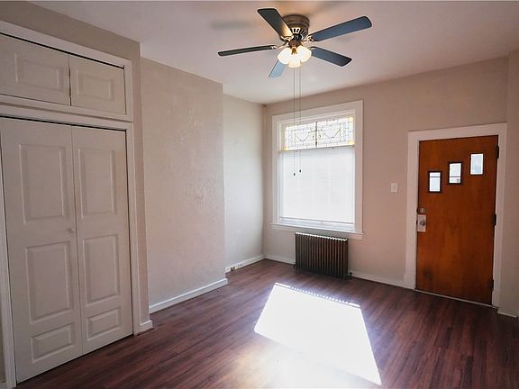 Solid Brick attached home with 4 floors of living space. Covered front porch leads to sunny living room with beautiful stained glass. Large eat in kitchen with plenty of cabinet, counter space, and table and chairs. Second floor has 2 small bedrooms with loads of closet space and a full bathroom. Up one more flight to the open third floor. windows front and back. enjoy having your bedroom and office. electric baseboard heat. Wonderful view of Lawrenceville and hillside over the river. Steps to lower level/basement leads to another full bathroom and a beautifully finished room with hardwood floor. Door leads to small backyard. container gardening. walkway to Carnegie Street, easy walk to Butler St for all of those restaurants, dessert and coffee places. Laundry room and mechanical room finish out the basement. Enjoy your new home as is or give it a fresh new look. Wonderful space and location!!