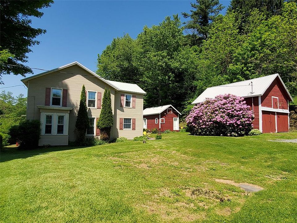 Beautifully renovated farm house on almost an acre of fabulous grounds. Vintage meets modern in the kitchen featuring the Champion gas cookstove, stainless steele appliances eat in area. The Adjoining dining room has an office off of it with a view of the yard. The living room has an adjacent full bath with laundry. The family room is also located on the first level perfect for a music room or reading. You'll find all the bedrooms on the 2nd floor & an updated full bath the Master has a huge walk in closet. The 3 ponds, & outbuildings make this property unique! The chicken coup allows for your own daily eggs. MINERAL RIGHTS NEGOTIABLE. owner just finished putting all new vinyl windows in the home, took down several large trees. New tankless hot water heater, newer gas furnace. This home would be a great weekend getaway for N.J. and NYC residents.