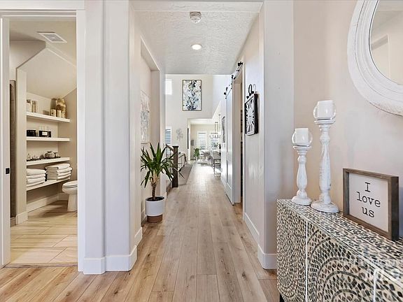 Prepare to fall in love when you enter with soaring ceilings and an enormous amount of natural light. Entertain like a pro in your dream kitchen with built in gas cooking, pot filling faucet over the range, double ovens, oversized island, and generous pantry. Living room features a cozy gas fireplace, built-ins, and beautiful chandelier. Main floor primary suite w/luxurious en suite, soaking tub, full tile shower w/dual heads, and spacious closet. 2nd main floor bedroom (check out the hidden room in the closet) & full bathroom is the perfect space for guests. Upstairs features a loft that is open to the downstairs, 3 additional bedrooms, full bath & Jack-n-Jill full bath. Enjoy the luxury of having all the landscaping work done for you with aspen trees, evergreens, arborvitae, and mature lush grass. Enjoy cool nights under your covered patio. 3 Car tandem garage. End lot location next to open green space! The prestigious Sky Mesa features two resort like infinity edge pools, parks, green spaces and pathways.