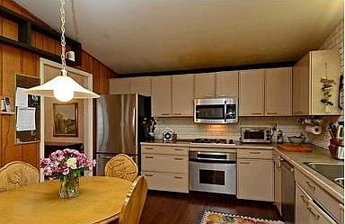 Pride of ownership in this attractive contemporary architectural style home. Open and spacious, formal living and dining rm great for entertaining. Vaulted ceilings, abundant light, designer John Prince wall covering in dining rm and entry, plantation shutters in living/dining and upstairs bedrooms. Spacious kitchen features designer Dacor Gas Cook Top w/built in electric/conv oven, Boesch dishwasher and bamboo flooring. Redwood deck w/built-in bench seating, decorative, circulating water ...