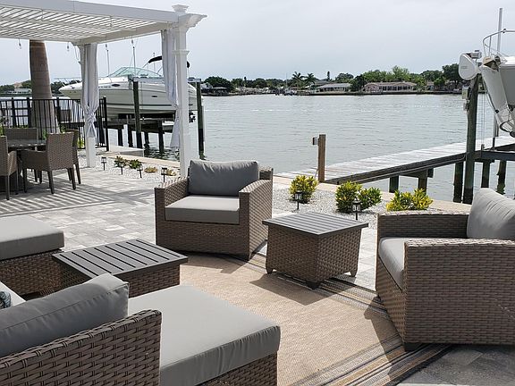 Minutes to the Gulf of Mexico. Directly on the Intracoastal Water Way. Enjoy everyday watching all the boats as they pass by behind you. Full unobstructed views to the North and South. Most rooms in the house have magnificient water views. The house sits at the end of the cul-de-sac of higher end homes. Inside laundry, new laminate floors throughout living area and bedrooms. Sliders from living area and master suite leads to a large newly paved deck and open water views. Single level living - no stairs! Low utilities! Newly installed louvered pergola allows you adjust the angle depending on the sun's position. You'll love sitting in the hot tub watching the boats and stars with a drink in your hand. Say "Hi" to the dolphins and manatees as they cruise through the waterway. Fabulous new kitchen with 9' quartz island. Brand new appliances include Jennair induction stove top and dishwasher- LG fridge, microwave and washer and dryer. House will be furnished. The boat lift is not included- sorry :( No pets over 30lbs. Non-smoking. Hot tub IS included in the rental price.
