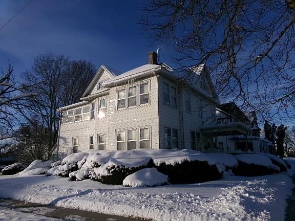 2 plex - Each unit has 2 bedrooms, 1 bath, living room, dining room, sun porch, kitchen and bath. Hardwood floors, natural woodwork throughout. 2 stall detached garage. Aluminum exterior. Main floor has c/a. Gas & electric are separate. Lower level pays water. Water softener for lower level, one water heater for entire house. Upstairs unit has enclosed porch. Fireplace on main level has not been used in years and is as-is. Water heater new in 2020. Owner lived in the lower unit. Upstairs tenant is a family member and pays gas and electric only - no rent. 24 hour notice to show. Home & appliances sold as-is.