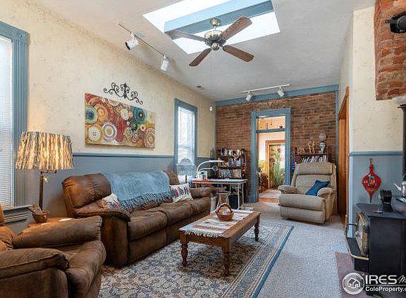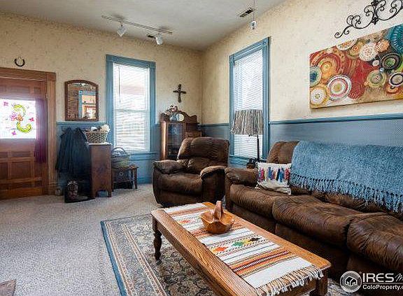A charming, hard to find bungalow in the heart of Berthoud. This historic home is within walking distance of many of the amenities the town has to offer ; restaurants, breweries, medical, dental, shopping, vet services, etc. Enjoy nearby Fickle Park where you can find a Farmer's Market and a couple festivals throughout the yr. The front part of the house is the original 100 yr old home with wood floors and brick walls. There are 3 out-buildings with one being the carriage house/garage that has been converted into an art studio. The studio has 220 VAC electricity, electric heat, running water with sink, and some new lighting. The studio can be converted back to a garage if desired. Another building is an old chicken house being used as a tool shed now. There is a fenced in chicken coop and chicken yard so you can have fresh daily eggs if wanted. The property is fully fenced with access to the alley. Because of the home's location, it has dual zoning: RESIDENTIAL and COMMERCIAL.