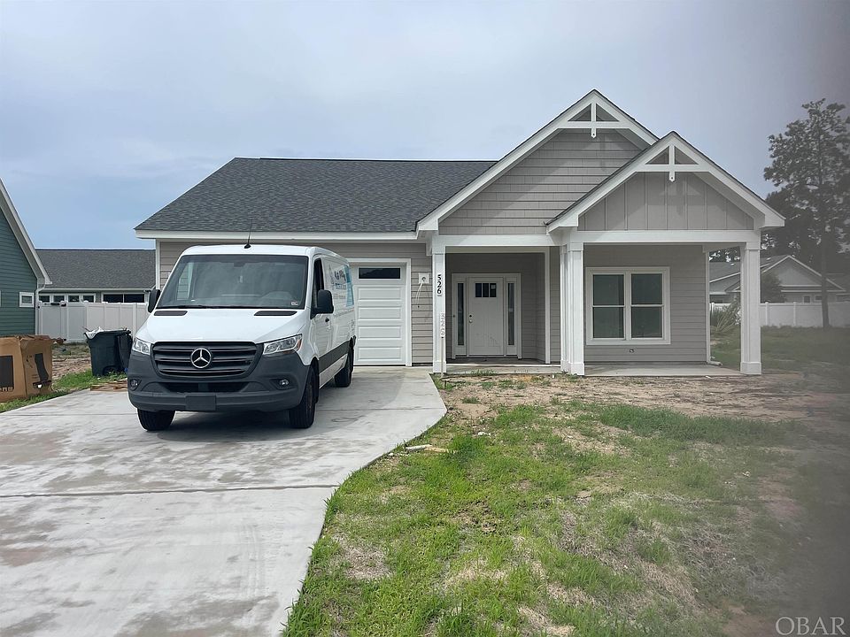 The Carrington plan offers single level living at its finest. The attention to detail will capture you as you walk in the front door to soaring ceilings in the dining and kitchen areas. The expansive kitchen is a cook's dream with eat-at kitchen island featuring quartz or granite counters and stainless steel GE appliances. The covered porch is perfect for entertaining or to enjoy the beautiful Outer Banks evenings. The private owner's suite features over-sized windows for natural light, a large walk-in closet, and luxury owner's bath. The two secondary rooms are located at the front of the home with shared bath. This plan also offers a two-car garage perfect for your cars, beach toys, and storage needs. Come explore Phase II of the Water Oak community. Water Oak is a sound front community of 70 homesites featuring a manicured entry, multiple green areas, and a community pier with kayak launch. The central location offers easy access to the beach, several miles of the Bay Drive multi-use path, disc golf, restaurants and eclectic beach shopping.