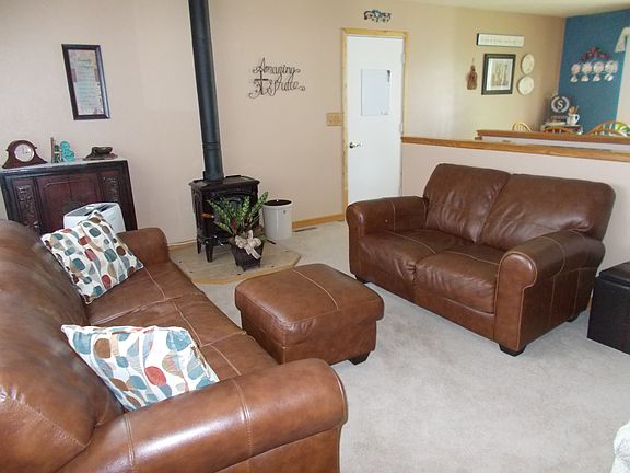 Beautiful three bedroom with possible 5 bedroom ranch style home with 2 bathrooms. Home has a new class 4 shingled roof, new paint inside and out, new shutters, new gutter down spouts, new dishwasher, new water heater, new furnace, new upstairs interior bedroom and closet doors, outdoor pond, workshop with lean to shed, Hearthstone wood stove with approximately 1/2 cord of wood and newer carpet. Updated kitchen cabinets, countertops and wood floors. Very large yard with a 12 X 24 foot concrete patio and pergola, mature trees, apple tree, two lovely lilac bushes, roses, hammock area, clothesline, full privacy fence, grapes, garden area, raspberries, rhubarb and nicely landscaped. Also, has a fire pit area for summer evenings. Very updated and well maintained. No HOA or Metro District. Immediate occupancy.