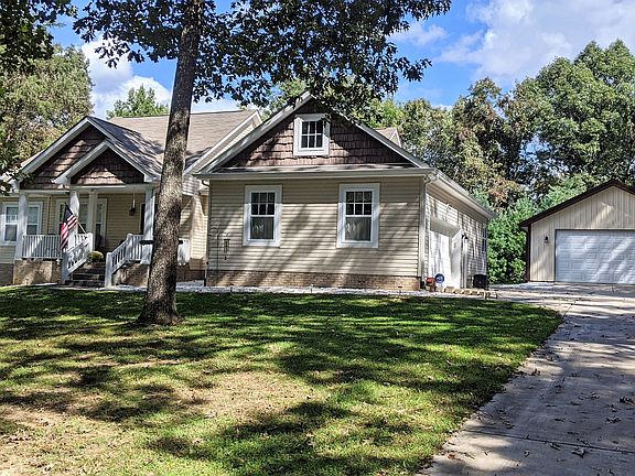 Beautiful home on 1 acre lot surrounded by mature trees, open concept great room and kitchen area with a vaulted ceiling, Master Bedroom has his and her walk-in closets and en suite with garden tub and stand up shower. There is a covered front porch and extra large covered back deck for grilling and entertaining. There is a 2 car attached garage and a detached garage that is 24 x 40 with two door openings (16 ft on front and 8 ft in back). Huge private back yard setting.