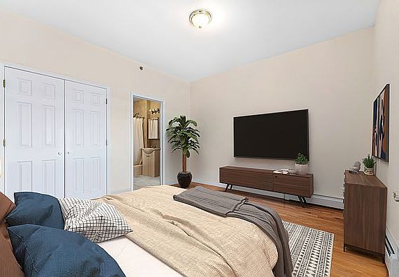 This large and airy Condo unit spans 950 sqft, across 1.5 bedrooms and 1.5 baths. The unit features hardwood floors throughout, a large galley kitchen with granite countertops, plenty of cabinets and counter space, stainless steel appliances and a dishwasher. The primary bedroom is king-sized and has a full bathroom attached. The secondary bedroom/office is spacious and allows room for full home office set up, or would be ideal as a young child's room, or a guest room. The spacious living room and dining room combo can accommodate any layout you desire and features large windows letting in ample amounts of natural light. No more searching for parking or shoveling your car out of the snow, being that a parking spot is included in this rental. The location is very convenient, being close to all shopping, beaches, and fitness centers. Transportation is readily available with the F train a short walk away and a B4 stop directly in front of the building. Cats and small dogs are allowed. Tenants are responsible for all utilities. Owner is looking for verifiable household income of $90,000, and credit score over 700. First month's rent, security deposit and broker fee are due at lease signing.